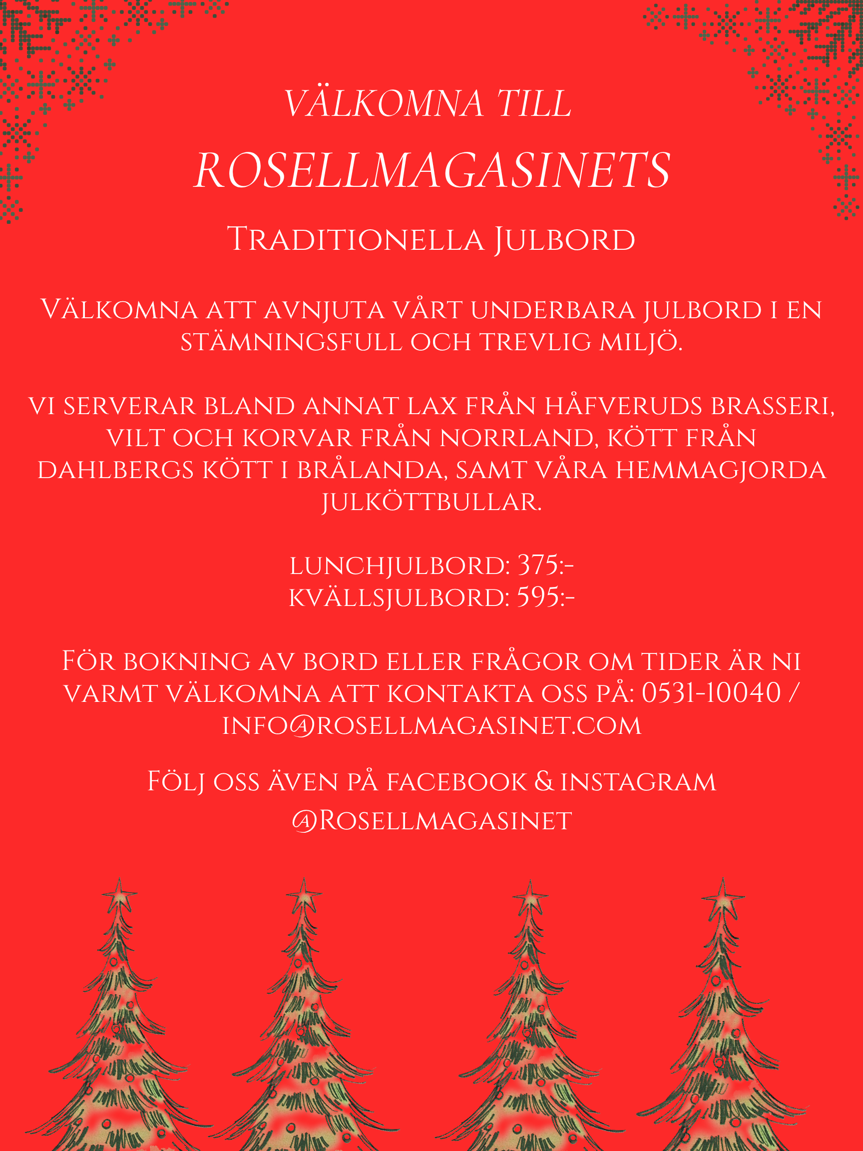 För övriga kvällsjulbord ring för info.